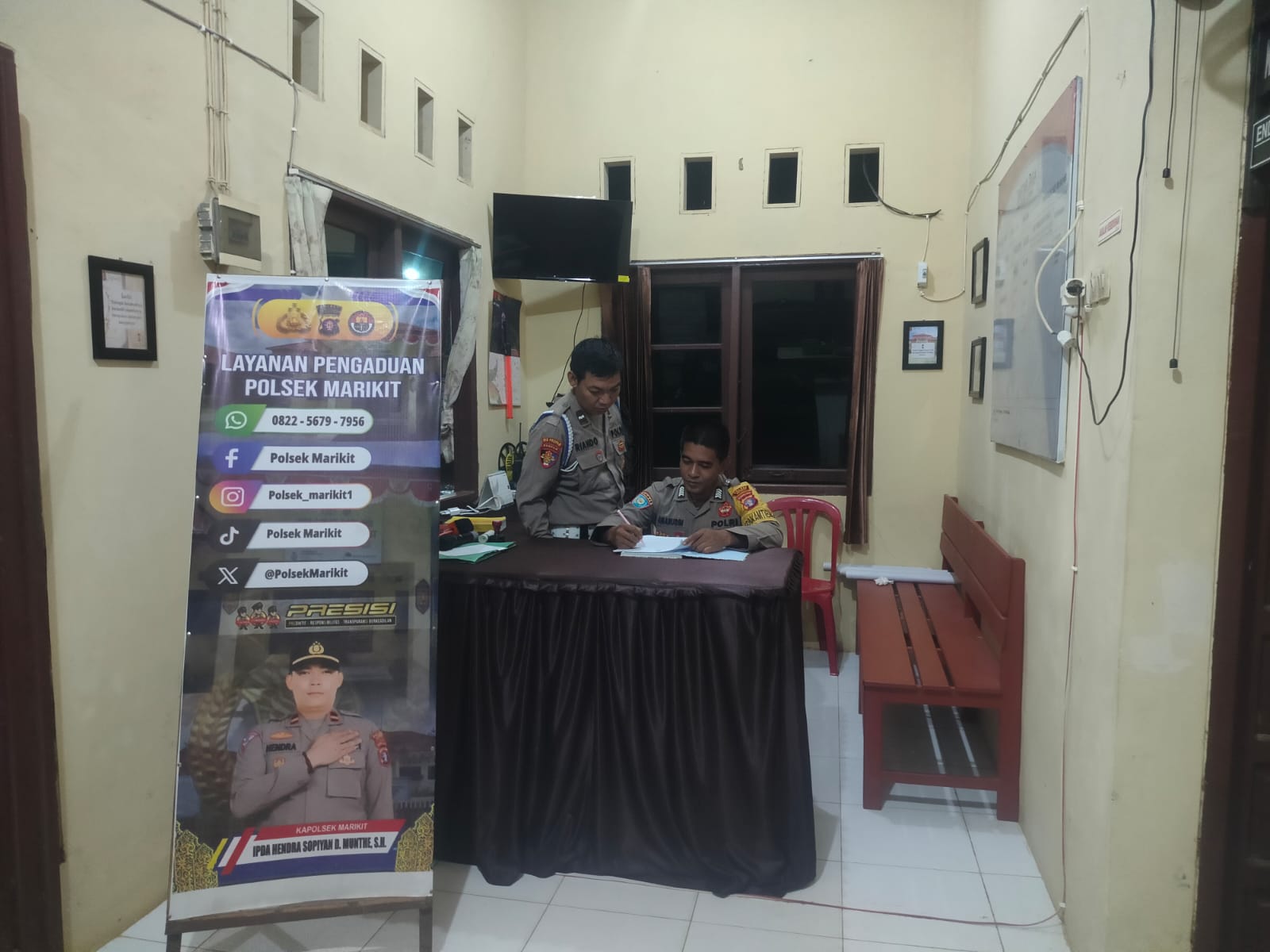 “Personel Polsek Marikit melaksanakan penjagaan di ruang pelayanan Mako Polsek hal tersebut bertujuan untuk menjaga serta melindungi Mako dan personel Polsek juga tetap melaksanakan patroli untuk mengantisipasi Gangguan Kamtibmas diwilayah hukum Polsek Marikit”. Jelasnya.