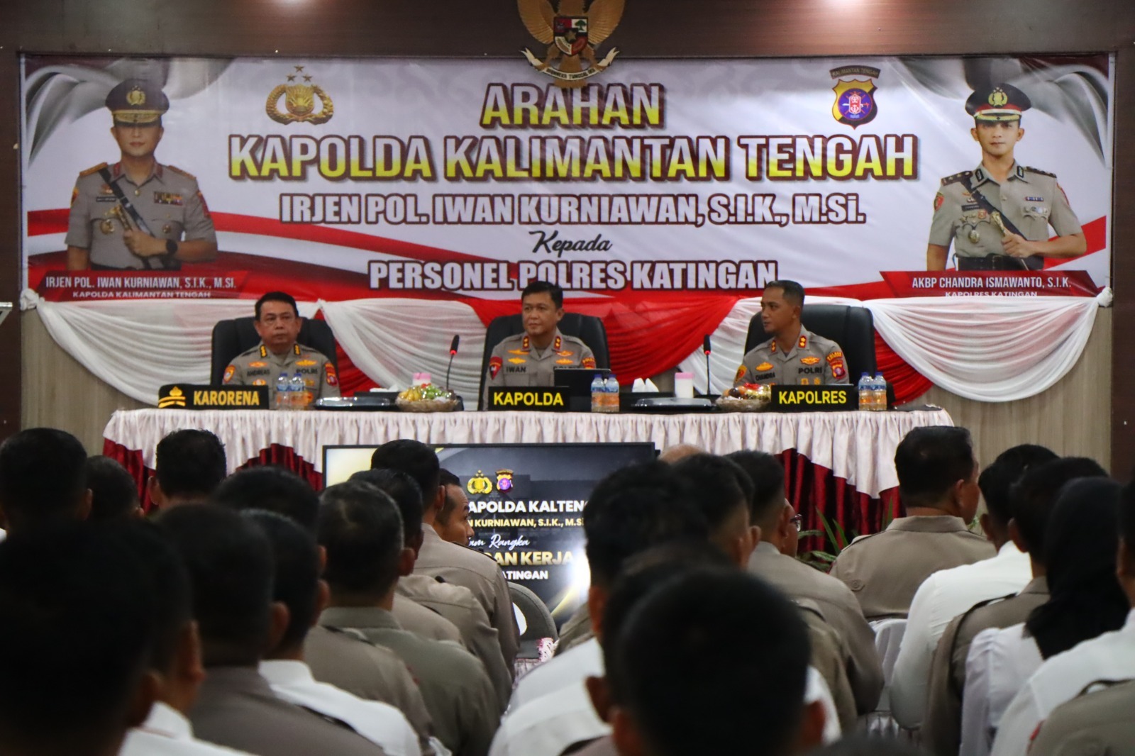 Dalam sambutannya, Kapolda Kalimantan Tengah mengucapkan terima kasih yang sebesar-besarnya kepada seluruh jajaran Polres Katingan atas dedikasi dan upaya yang telah dilakukan dalam menjaga keamanan dan ketertiban masyarakat (Kamtibmas) di Kabupaten Katingan. Kapolda juga memberikan penghargaan atas inovasi yang telah dilakukan oleh Polres Katingan dalam meningkatkan pelayanan kepada masyarakat, serta keberhasilan dalam menciptakan situasi yang aman dan kondusif di daerah tersebut.