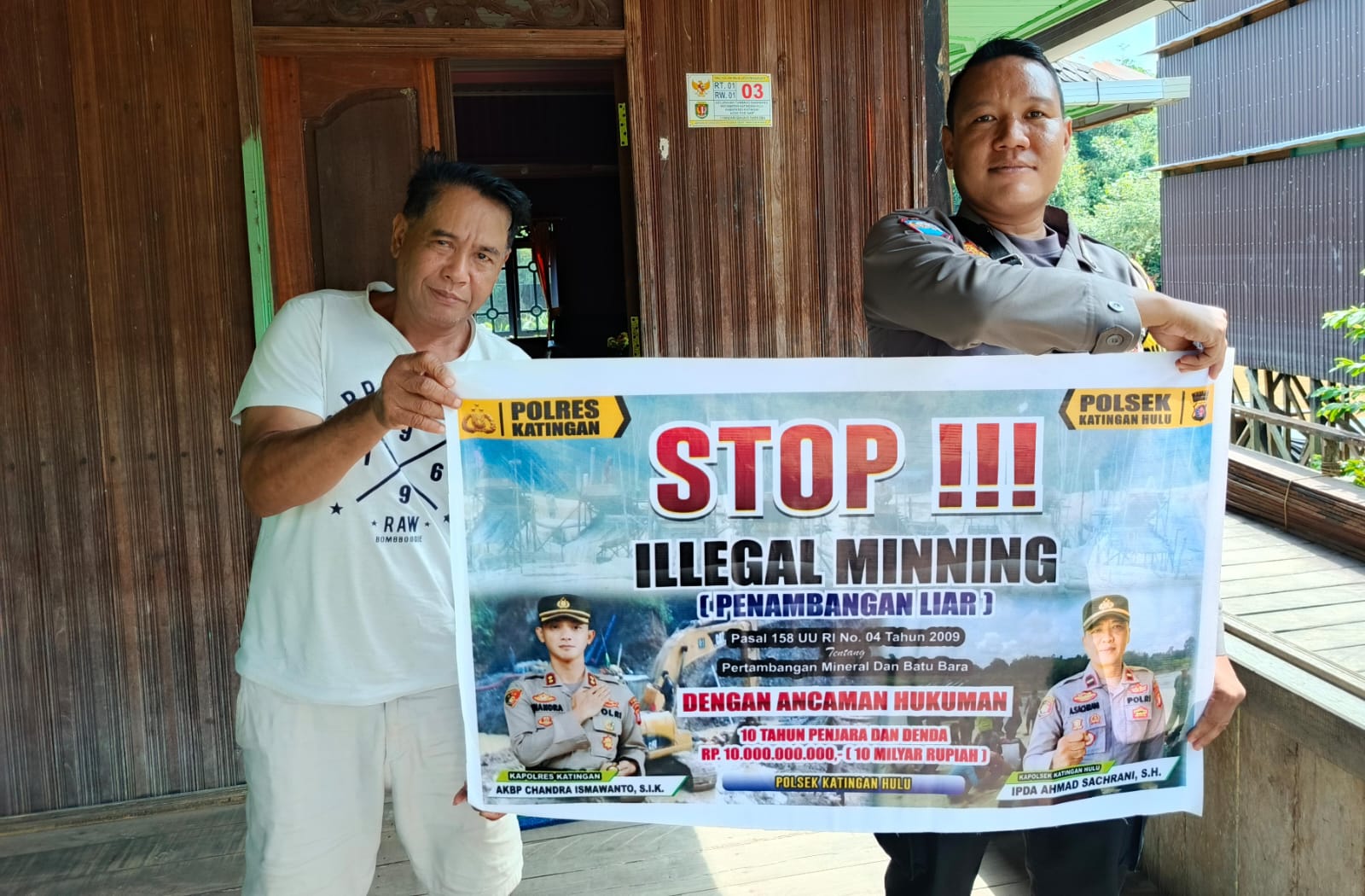 Kapolres Katingan AKBP CHANDRA ISMAWANTO, S.I.K. melalui Kapolsek Katingan Hulu dan Bukit Raya, IPDA AHMAD SACHRANI, S.H. menjelaskan kegiatan Bhabinkamtibmas jajaran Polres Katingan dengan cara sosialisasi kepada masyarakat agar mengerti dan memahami tentang larangan Ilegal Mining serta mengerti bahwa dampak dan akibat yang di timbulkan akibat Ilegal mining tersebut.