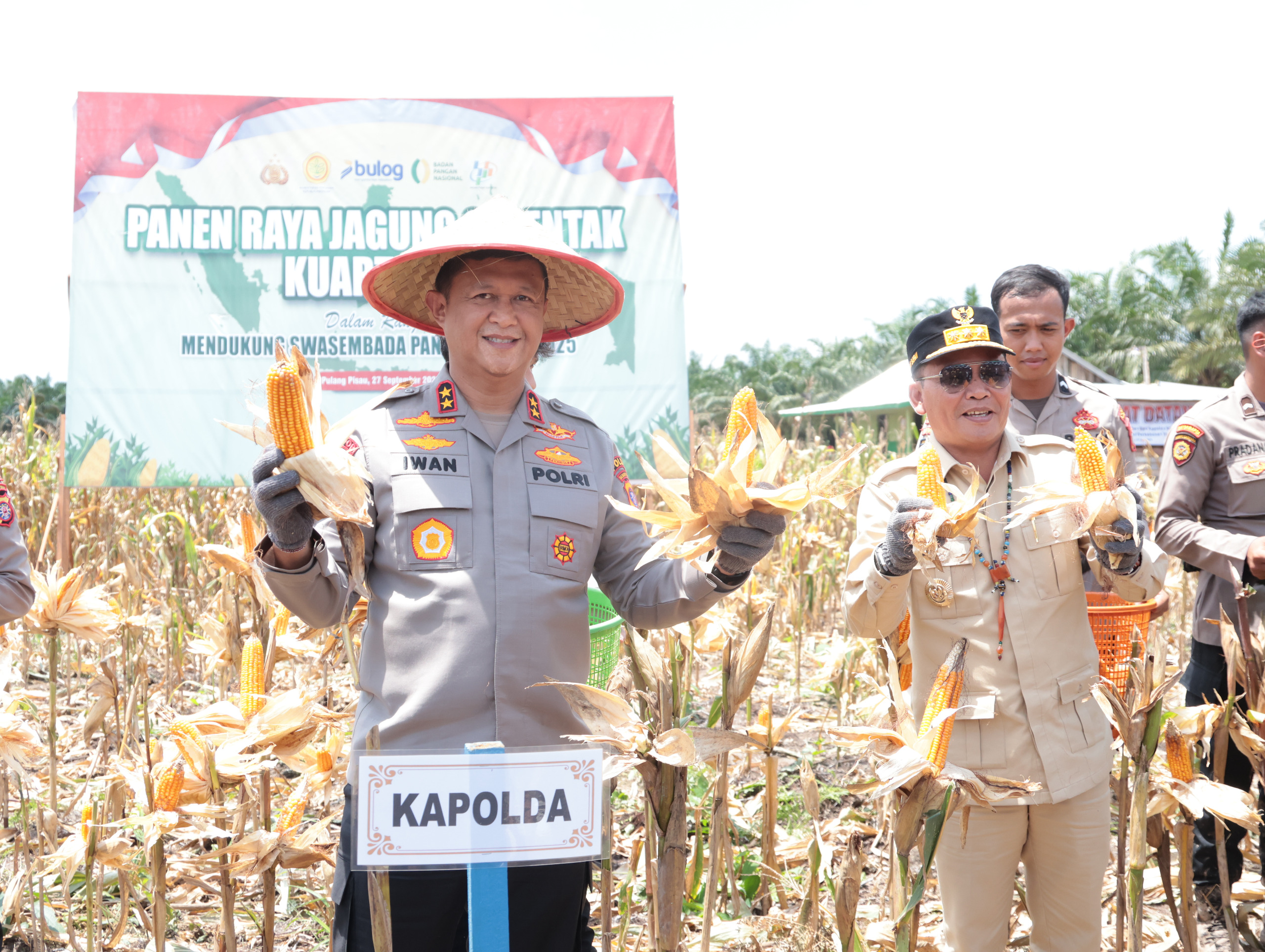 Palangka Raya – Kapolda Kalimantan Tengah Irjen Pol Iwan Kurniawan bersama Gubernur H. Agustiar Sabran melaksanakan panen raya jagung kuartal III, di Desa Anjir, Kec. Kahayan Hilir, Kab. Pulang Pisau (Pulpis), Sabtu (27/9/2025).