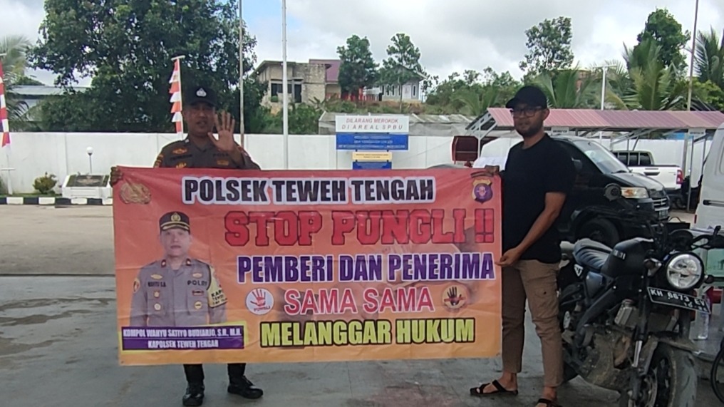 Kapolres Barut AKBP Singgih Febiyanto, S.H., S.I.K. melalui Kapolsek Teweh Tengah KOMPOL Wahyu Satiyo Budiarjo, S.H., M.H. mengatakan anggota Polsek Teweh Tengah dengan humanis memberikan pemahaman dan edukasi kepada masyarakat untuk bersama-sama memberantas aktivitas pungutan liar serta mengedukasi bahwa pemberi dan penerima sama-sama melanggar hukum dan akan dikenakan sanksi Pidana.” Minggu (28/09/2025) Pagi mulai Pukul 09:30 WIB.