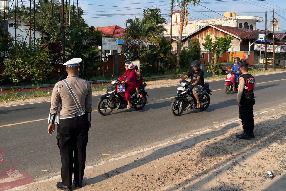 Katingan – Untuk tetap menjaga keselamatan pengendara, Sat Samapta Polres Katingan layani masyarakat dengan melaksanakan pengaturan lalu lintas di pagi hari