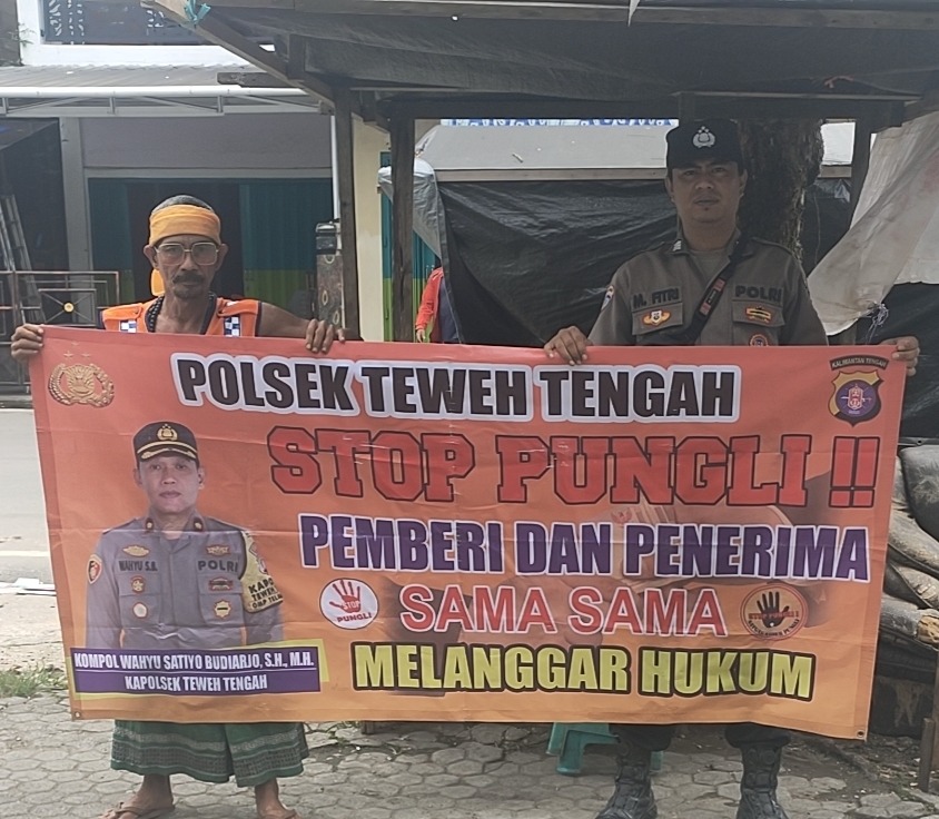 Kapolres Barut AKBP Singgih Febiyanto, S.H., S.I.K. melalui Kapolsek Teweh Tengah KOMPOL Wahyu Satiyo Budiarjo, S.H., M.H. mengatakan anggota Polsek Teweh Tengah dengan humanis memberikan pemahaman dan edukasi kepada masyarakat untuk bersama-sama memberantas aktivitas pungutan liar serta mengedukasi bahwa pemberi dan penerima sama-sama melanggar hukum dan akan dikenakan sanksi Pidana.” Kamis (2/10/2025) Pagi mulai Pukul 09:30 WIB.