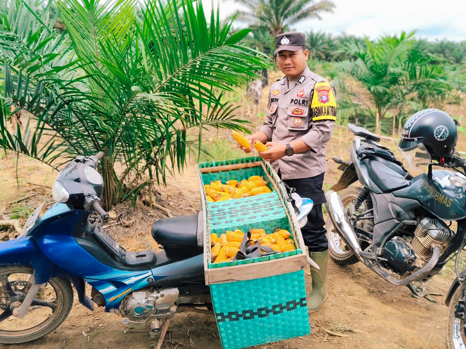 Bhabinkamtibmas Polsek Sematu Jaya Panen Jagung Kuartal III Dukung Program Swasembada Pangan Tahun 2025