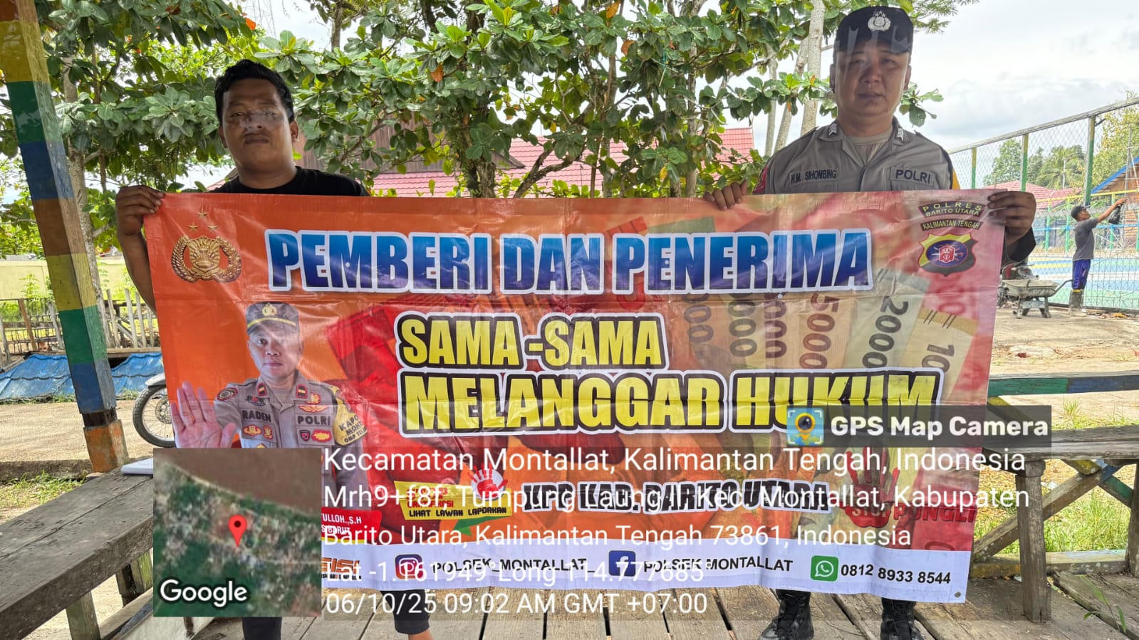 Kapolres Barut AKBP Singgih Febiyanto, S.H., S.I.K. melalui Kapolsek Montallat IPDA RADEN KOMARUDIN HIDAYATULLOH S.H., mengatakan anggota Polsek Montallat dengan humanis memberikan pemahaman dan edukasi kepada masyarakat untuk bersama-sama memberantas aktivitas pungutan liar serta mengedukasi bahwa pemberi dan penerima sama-sama melanggar hukum dan akan dikenakan sanksi Pidana .”Senin (06/10/2025) Pagi mulai Pukul 09.00 WIB.