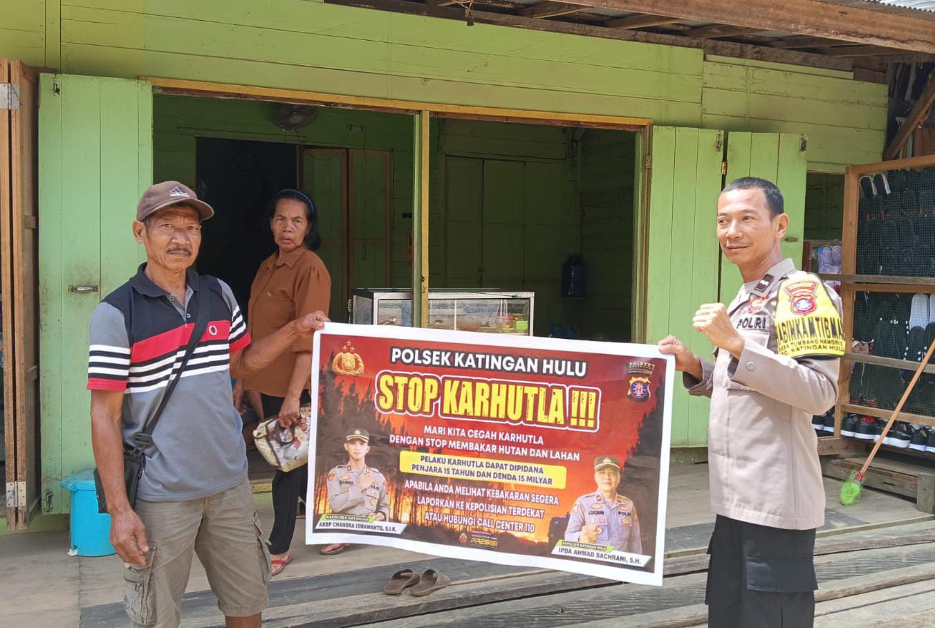 Kapolres Katingan AKBP CHANDRA ISMAWANTO S.I.K melalui Kapolsek IPDA AHMAD SACHRANI, S.H menyampaikan kegiatan ini dilakukan secara rutin dan terus-menerus dengan langsung turun ke semua wilayah baik pada tingkat Desa maupun pada tingkat Kecamatan agar masyarakat mengetahui tentang LARANGAN MEMBAKAR HUTAN DAN LAHAN.