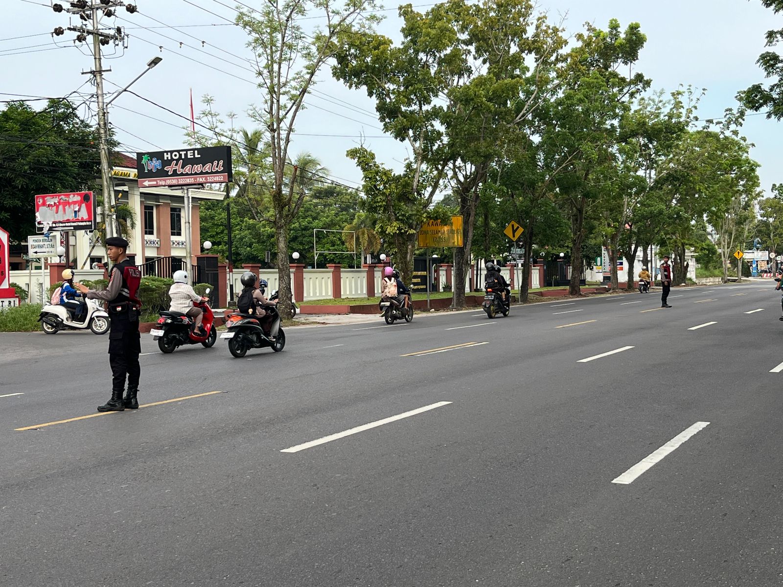 Dengan sigap pihaknya mengatur arus kendaraan serta membantu penyeberangan para pelajar dan pengguna jalan lainnya.