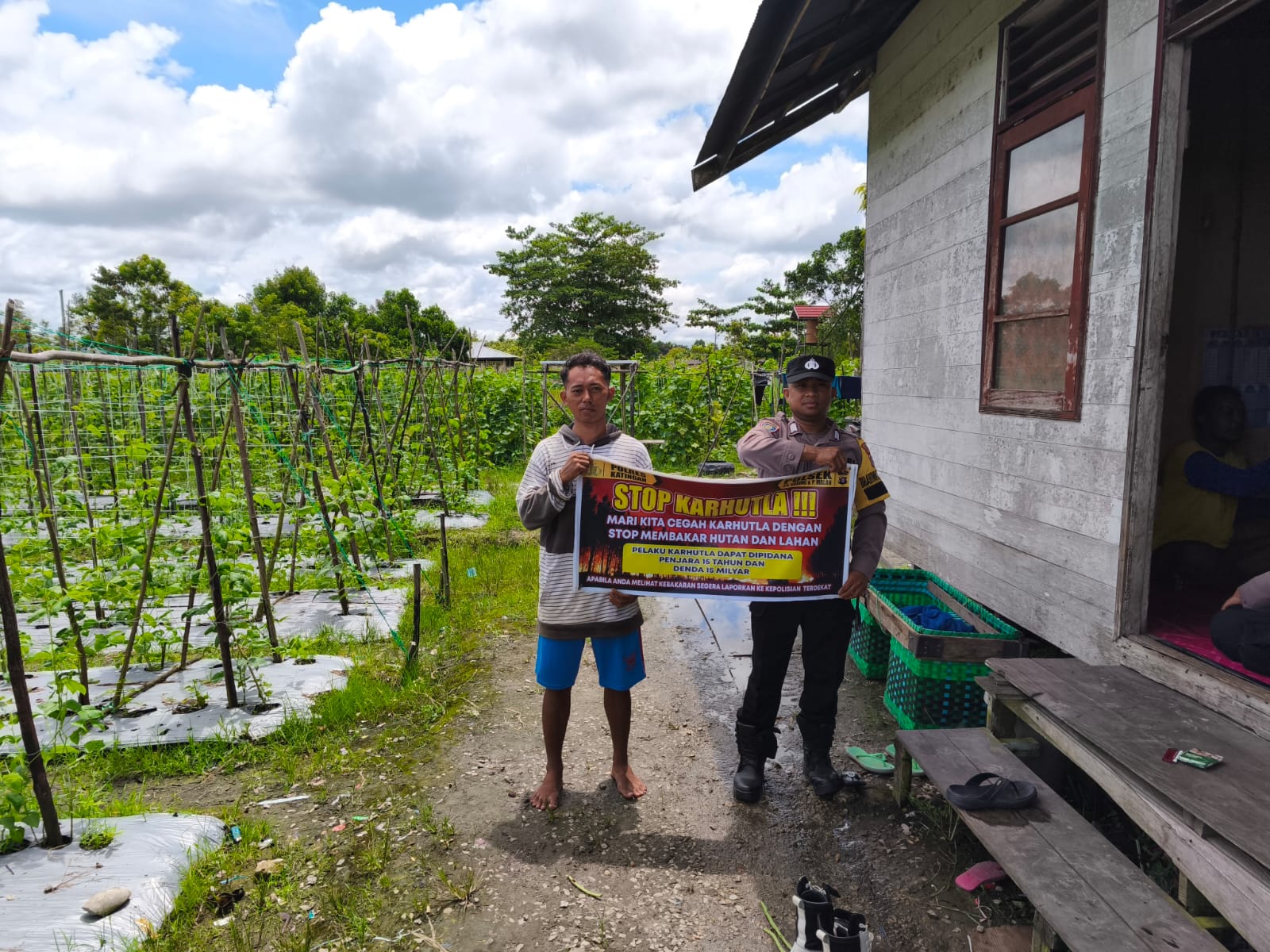 Polres Katingan – Salah satu cara Polsek Tws. Garing dan Pulau Malan, Polres Katingan, Polda Kalimantan Tengah dalam menangani Dampak KARHUTLA, Bhabinkamtibmas Kel Pandahara Polsek Tws. Garing dan Pulau Malan melaksanakan Sosialisasi STOP!!! KEJAHATAN TERHADAP LINGKUNGAN “DILARANG MEMBAKAR HUTAN DAN LAHAN DI WILKUM POLSEK TWS GARING DAN P. MALAN kepada masyarakat Kel.Pendahara Kec.Tewang Sanggalang Garing Kab.Katingan kegiatan,Selasa (21/10/2025) pagi.
