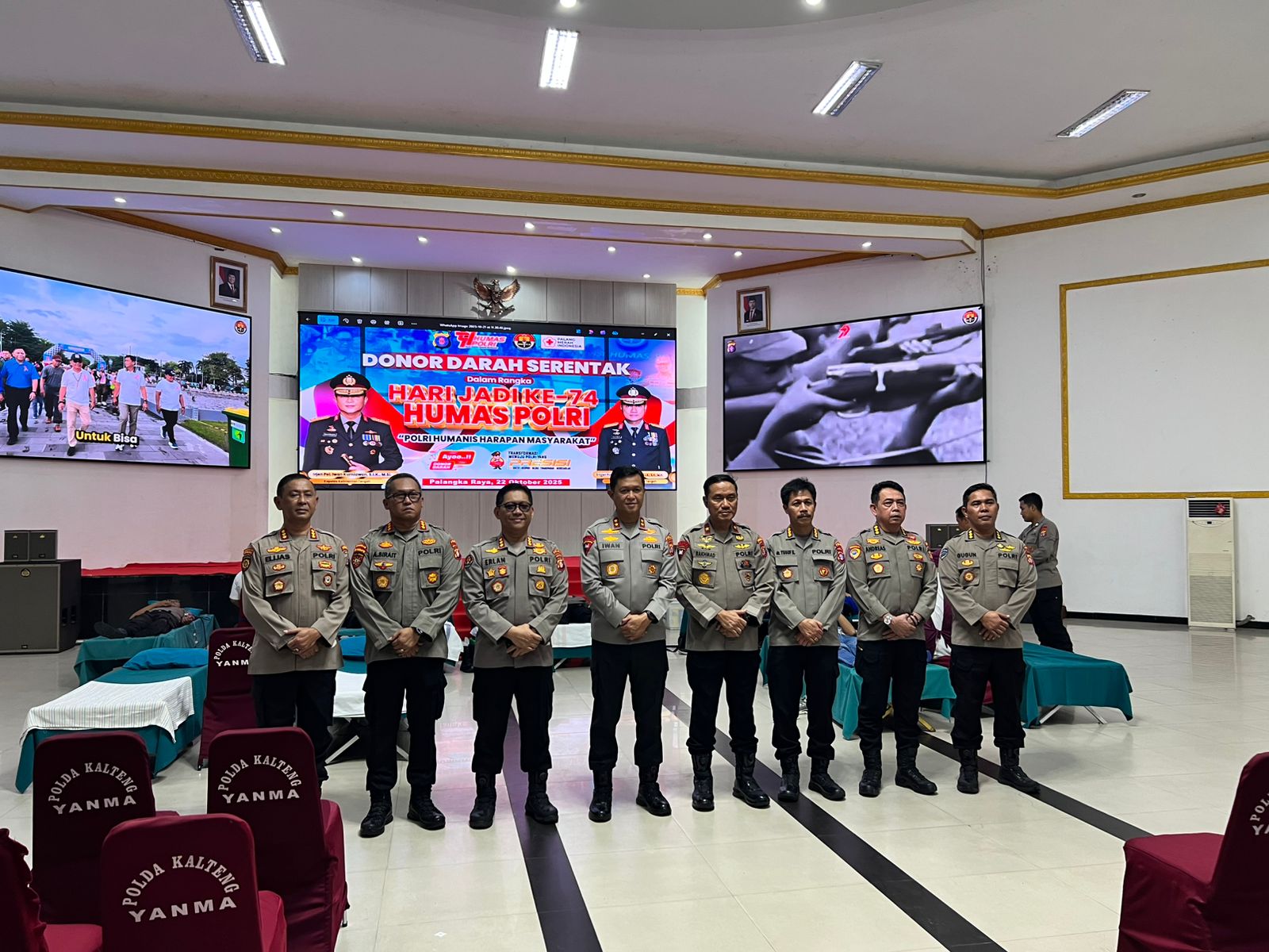 Palangka Raya – Memperingati Hari Ulang Tahun (HUT) Humas Polri ke-74, personel Direktorat Samapta Polda Kalimantan Tengah (Kalteng) turut ambil bagian dalam kegiatan donor darah serentak yang digelar di Aula Graha Bhayangkara, Mapolda Kalteng, Jl. Tjilik Riwut, Km. 1. Rabu (22/10/2025).