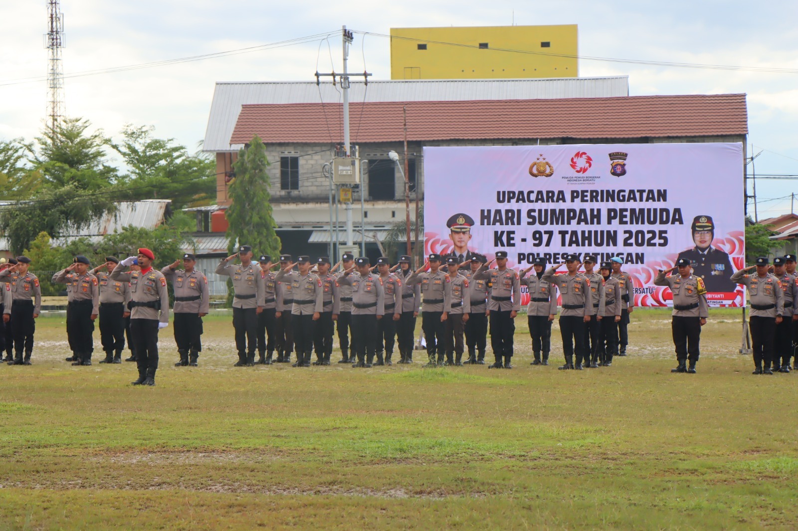 Katingan — Dalam rangka memperingati Hari Sumpah Pemuda ke-97, Polres Katingan melaksanakan upacara di lapangan Mako Polres Katingan, Selasa (28/10/2025) Pagi.